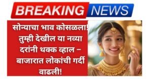 Gold Price Today News:शहरातील सोन्याचे दर पुढीलप्रमाणे आहेत. सोनं दोन प्रकारांमध्ये येतं — २४ कॅरेट आणि २२ कॅरेट. कॅरेट म्हणजे सोन्याची शुद्धता. २४ कॅरेट सोनं खूप शुद्ध असतं, म्हणजे त्यात जवळजवळ १००% सोने असतं. २२ कॅरेट सोन्यात थोडं कमी शुद्ध सोनं असतं, त्यामुळे ते दागिन्यांसाठी अधिक टिकाऊ असतं. नवीन दर पाहण्यासाठी येथे … Continue reading सोन्याचा भाव कोसळला! तुम्ही देखील या नव्या दरांनी थक्क व्हाल – बाजारात लोकांची गर्दी वाढली! Gold Price Today News