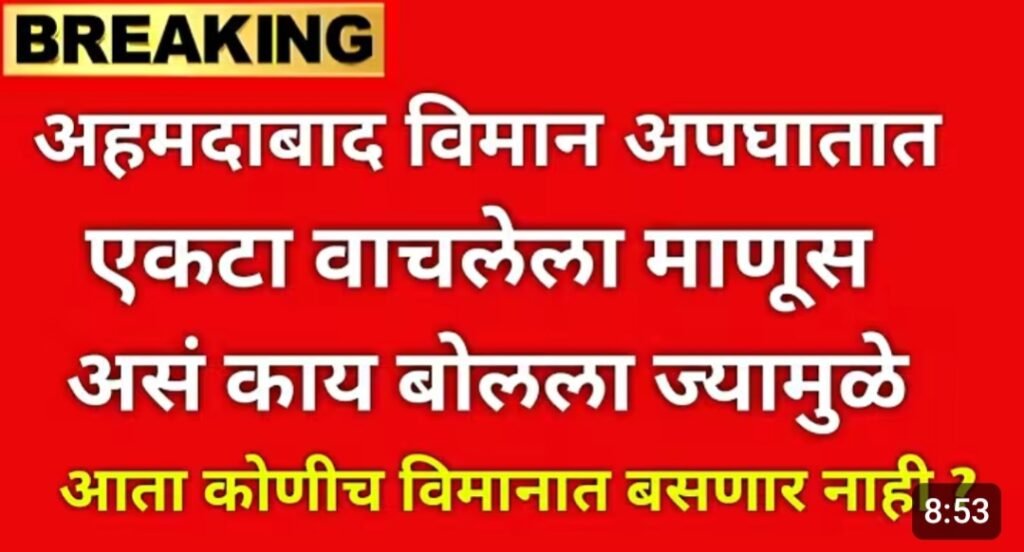 अहमदाबाद विमान अपघातात एकटा वाचलेला माणूस असं काय बोलला ज्यामुळे आता कोणीच विमानात बसणार नाही मेघानीनगर भागात विमानाचा भीषण अपघात घडला. अहमदाबादवरुन लंडनसाठी निघालेले एअर इंडियाचे प्रवासी विमान कोसळले. या विमानाने टेकऑफ घेताच काही क्षणात ते मेघानीनगर या ठिकाणी कोसळलं. यामुळे विमानाला आग लागली. या घटनेचे अनेक व्हिडीओ समोर येत … Continue reading अहमदाबाद विमान अपघातात एकटा वाचलेला माणूस असं काय बोलला ज्यामुळे आता कोणीच विमानात बसणार नाही